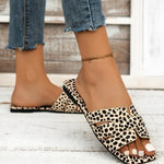 This summer, embrace the classic open leopard sandal to beautify your feet and complete your outfits. This rigid, flat style will be easy to wear at the beach or in the city. Its classic design will suit all body types. Its simple belt-style strap adds a touch of originality.